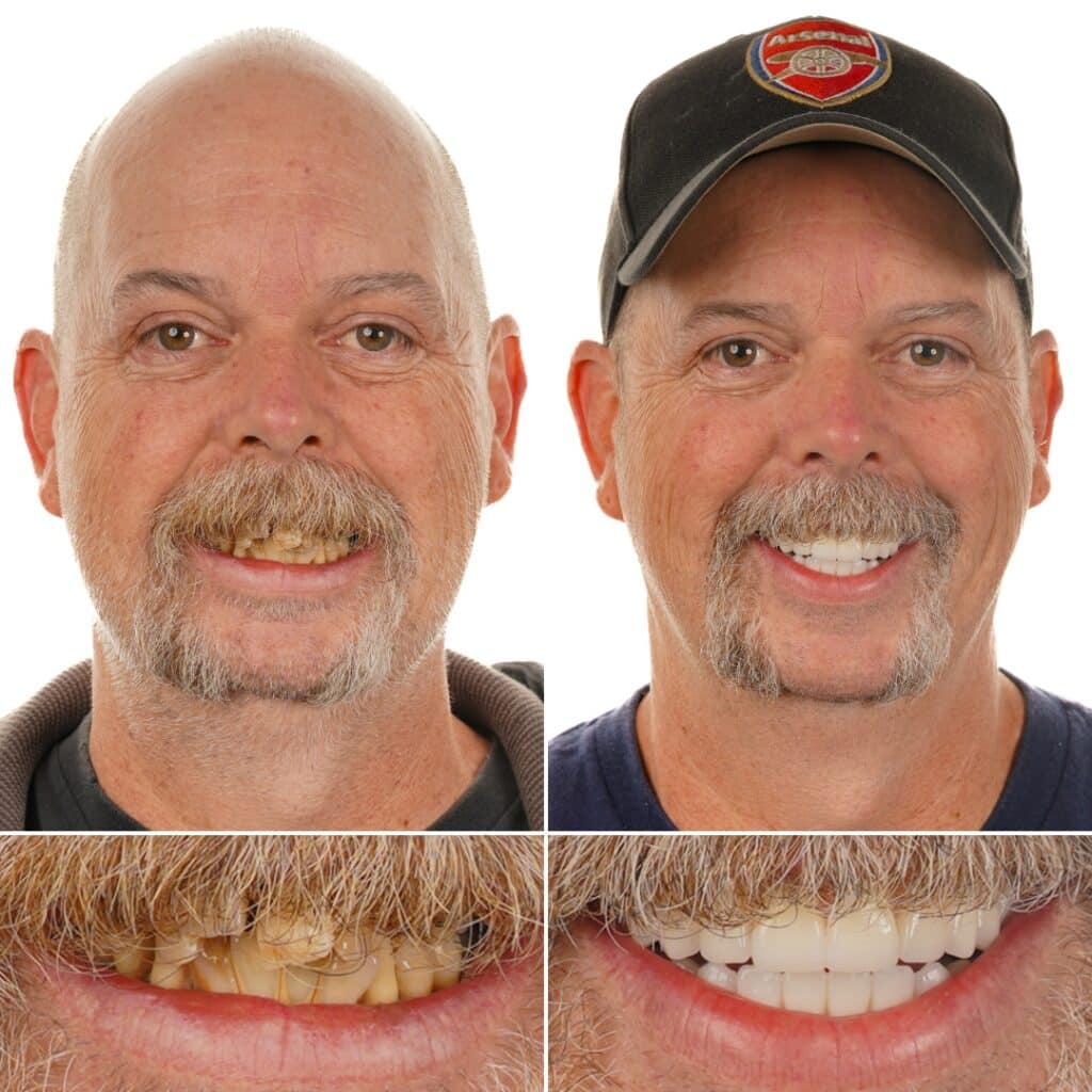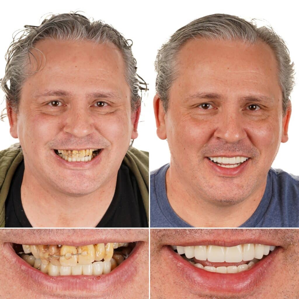 Full-mouth dental implant before and after cases at ATL Dental Implants show how advanced implant treatment can replace missing or failing teeth with fixed, natural-looking restorations. These transformations are designed to rebuild strength, improve oral health, and create a confident, functional smile that feels secure every day.